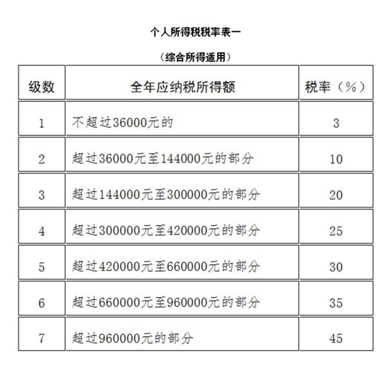 (注1:本表所称全年应纳税所得额是指依照本法第六条的规定,居民个人取得综合所得以每一纳税年度收入额减除费用六万元以及专项扣除、专项附加扣除和依法确定的其他扣除后的余额。