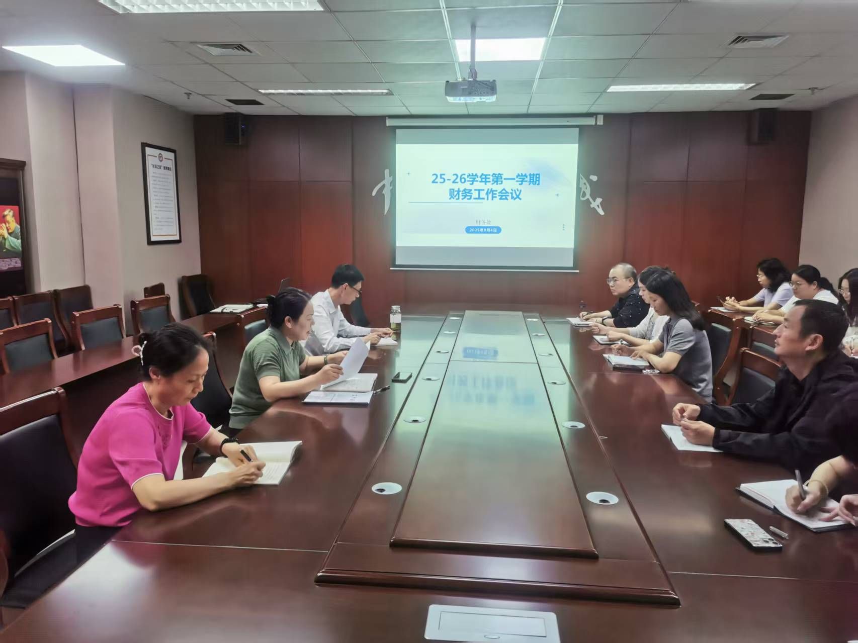 9月4日下午,财务处在综合楼三楼会议室召开2025-2026学年第一学期工作会议。会议深入学习贯彻校领导在开学工作会议上的讲话精神,聚焦本科教育教学审核评估与硕士授权单位建设核心任务,全面部署新学期财务服务保障工作。会议由财务处处长海萍丽主持,财务处全体人员参加。